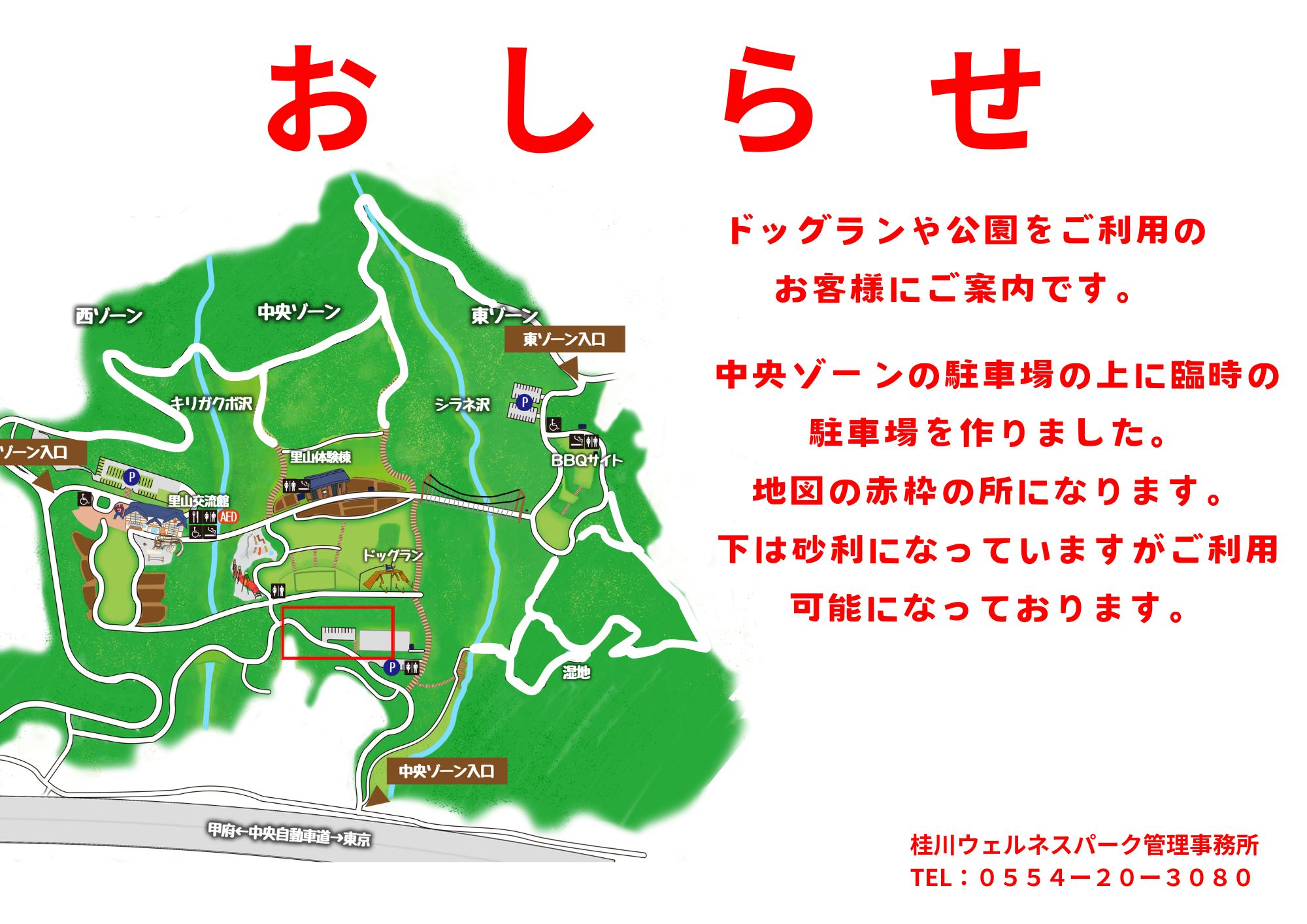里山の自然を生かした西、中央、東の3ゾーンがあり、農業や自然体験から、アスレチック、ドッグラン、BBQなど、様々な楽しみ方ができる公園です。