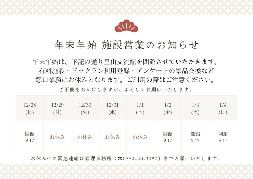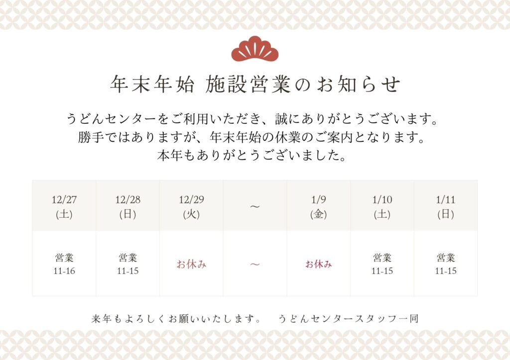年末年始休業に伴うお知らせ