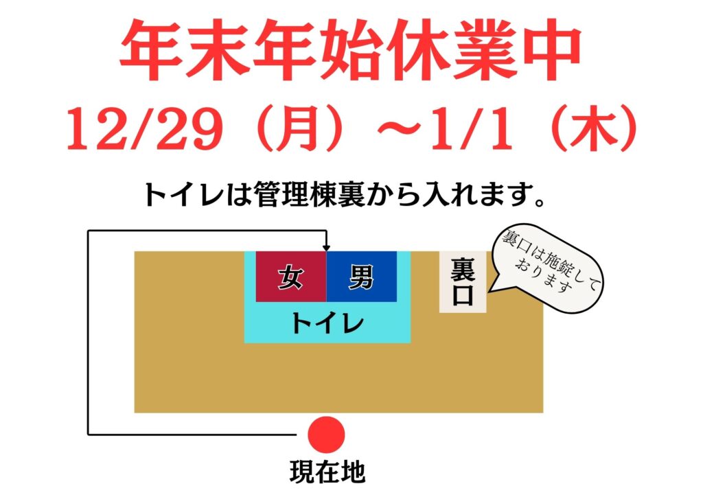 12/28(日)~1/1(木)までは休業になります。