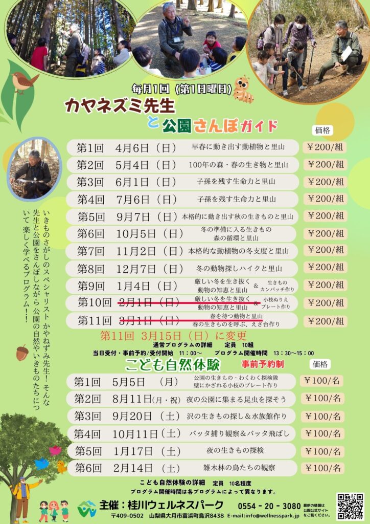 ※かやねずみ先生の公園散歩ガイドですが第10回の2/1(日)は中止になりました。