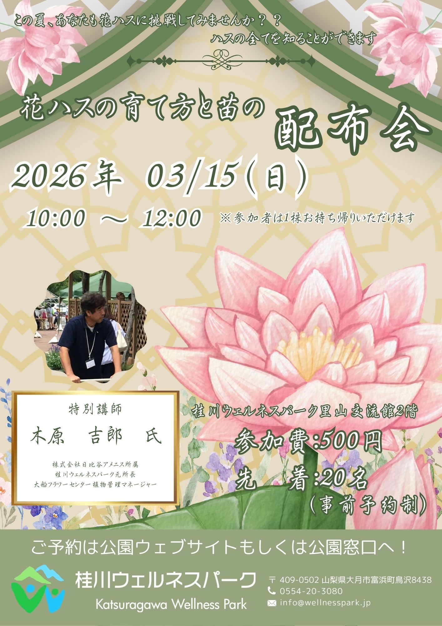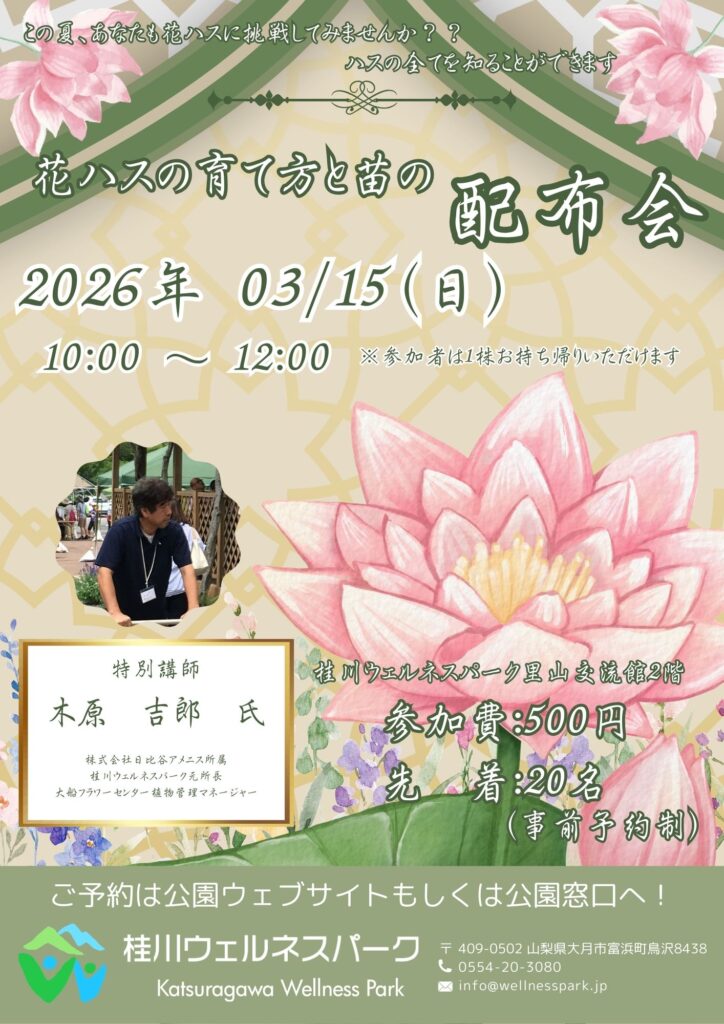 花ハスの育て方と苗の配布会を実施いたします。