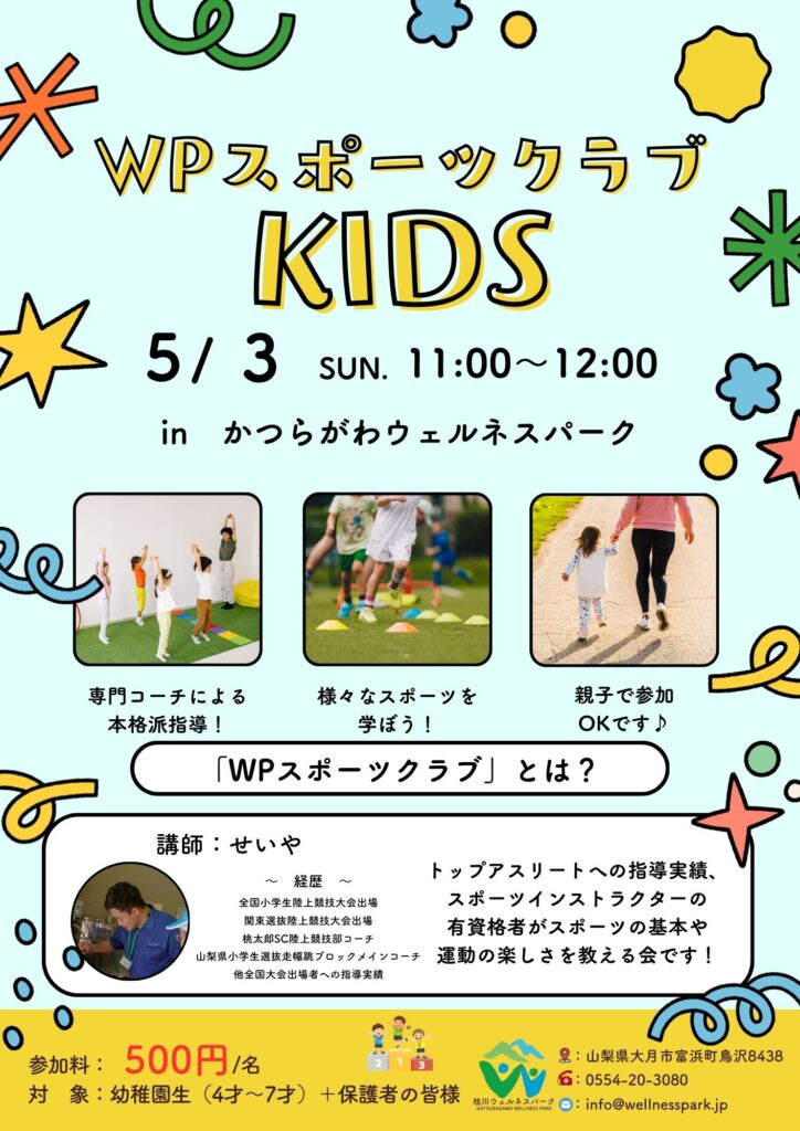 楽しくスポーツを学びましょう!お子様と一緒に保護者の参加もできます。